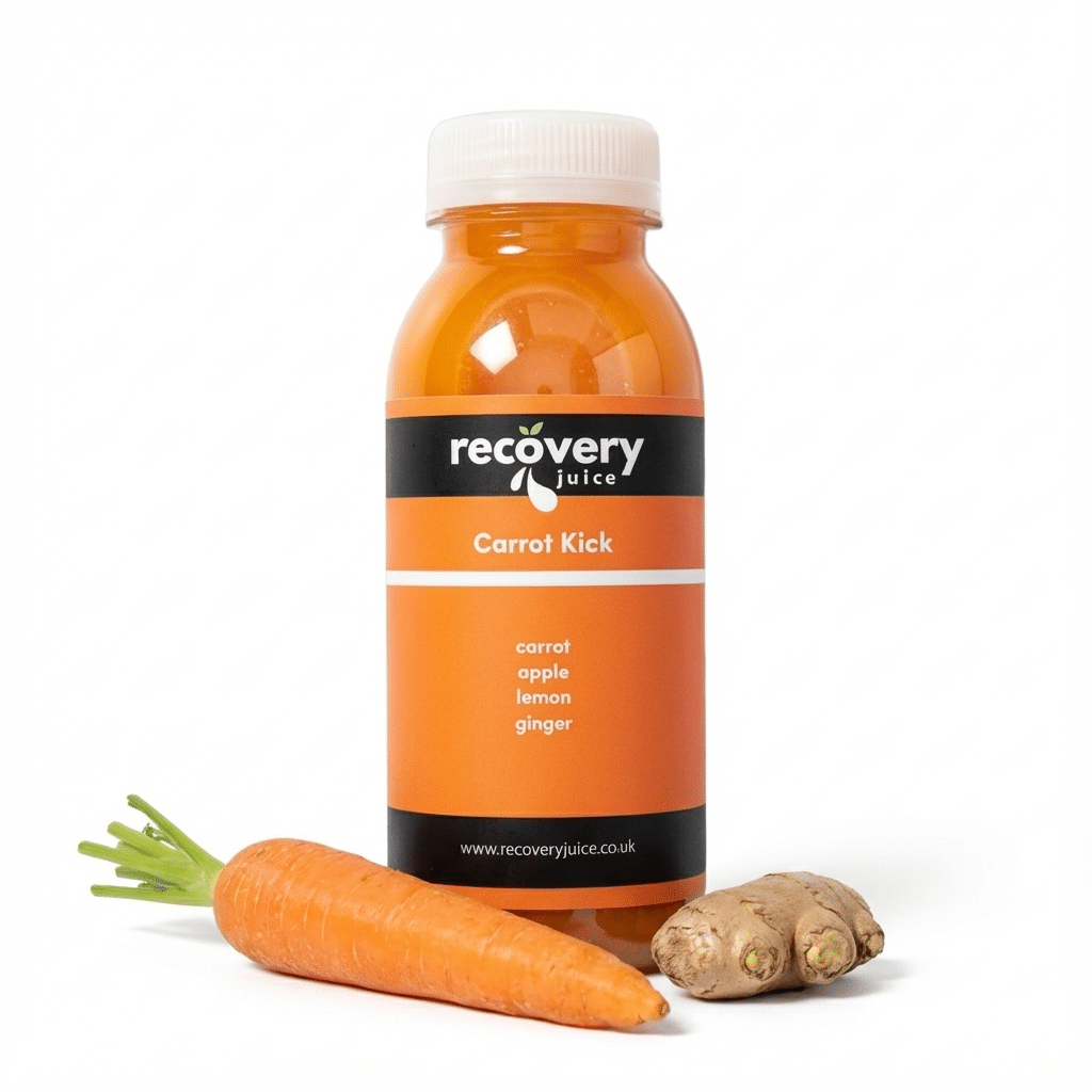 Carrot Kick is a cold-pressed carrot juice for skin and immunity, blended with apple, ginger and lemon for natural vitality without excess sugar. Rich in beta-carotene and antioxidants, it supports glowing skin, steady energy and daily immune function. Flash-frozen for freshness and delivered across the UK, it’s functional carrot juice made simple.
