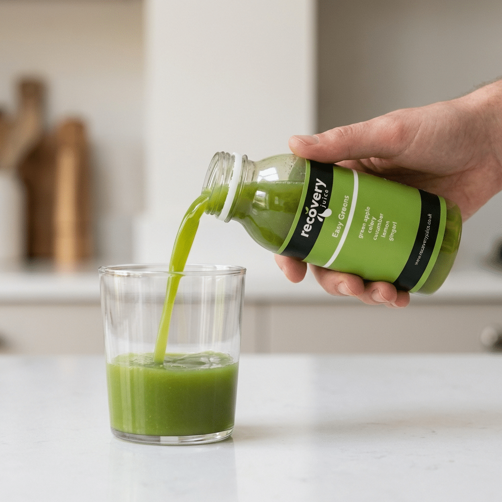 Cold-pressed green juice for gentle hydration and digestive support.